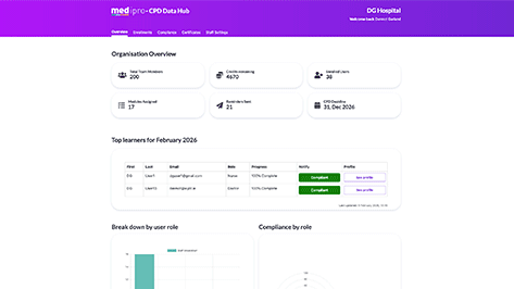 Medi Pro is a complete CPD management solution for hospitals, pharmacies, clinics, and healthcare organisations. Whether you manage doctors, nurses, pharmacists, or dentists, our platform gives your team instant access to accredited learning β while giving you the tools to ensure compliance, save time, and raise standards.